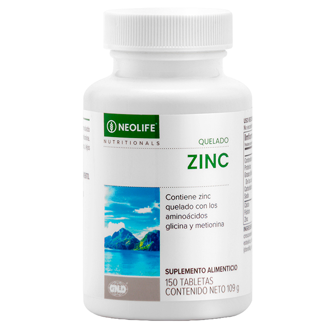 Quelado Zinc de NeoLife te ofrece 15 mg de Zinc por tableta, en su forma más biodisponible. Este mineral está unido (quelado) con los aminoácidos Glicina y Metionina, garantizando una absorción eficiente en el organismo. Es fundamental para el sistema inmunológico, la cicatrización de heridas, la función de más de 200 enzimas y el correcto metabolismo de los carbohidratos.